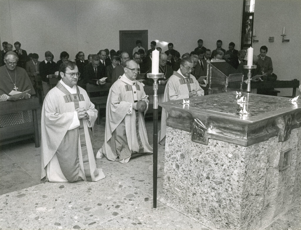 Sind „Geist und Wahrheit“ in der Gestaltung der Seminarkirche nur Zufall? Wohl kaum. Eine echte Berufung zum Priestertum ist oft genug spröde. Sie geschieht nur langsam, schrittweise, phasenweise. Sie braucht verschiedene Anläufe und das beharrliche Bleiben und Wiederkommen, bis sie wirklich reift und zur Erfüllung kommt. „Geist und Wahrheit“ der Berufung zum Priestertum bestehen in der Beständigkeit und Beharrlichkeit, im schrittweisen Entdecken der Beziehung zu Jesus Christus als dem, der zum priesterlichen Dienst einlädt.