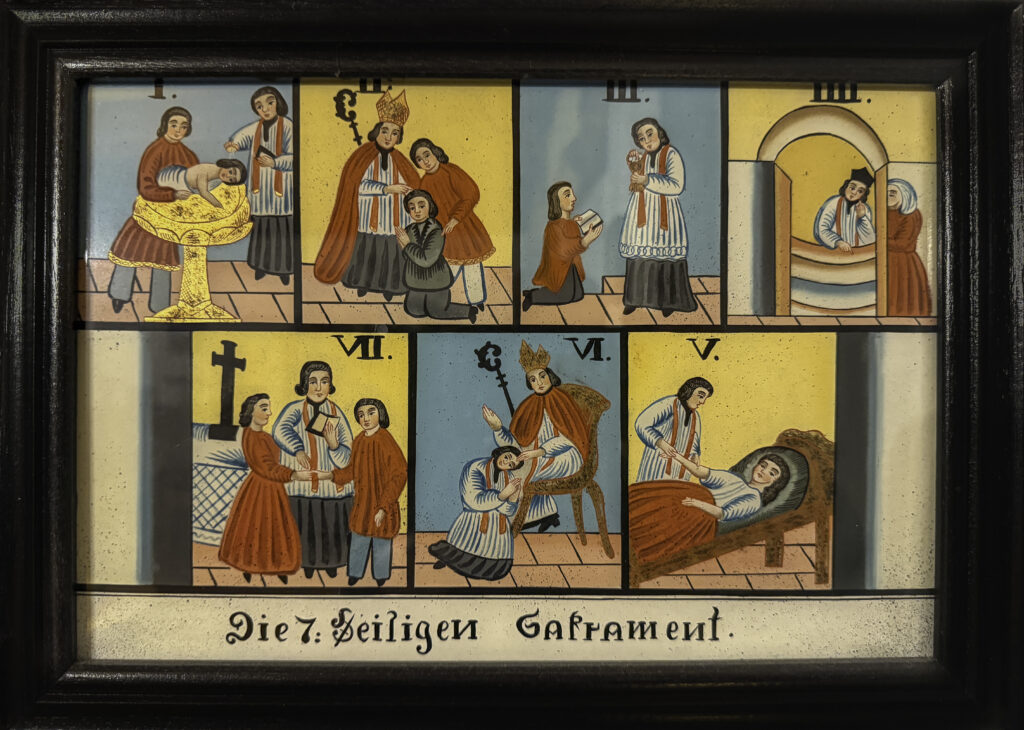 Unter dem Begriff „sacramentum“ wurde in der Antike der Fahneneid der römischen Soldaten verstanden. Erst der lateinische Kirchenschriftsteller Tertullian (gest. 240 n. Chr.) übertrug ebendiesen auf die Taufe. Das Konzil von Trient (1545 – 1563) legte wiederum die Siebenzahl der Sakramente fest; somit untergliedern sie sich in die Initiations- (Taufe, Eucharistie, Firmung), Standes- (Ehe, Weihe) und Heilungssakramente (Buße, Krankensalbung). Auf diese Weise begleiten sie den Gläubigen sowohl auf den großen Stationen seines Lebens, als auch dessen Alltag hindurch.