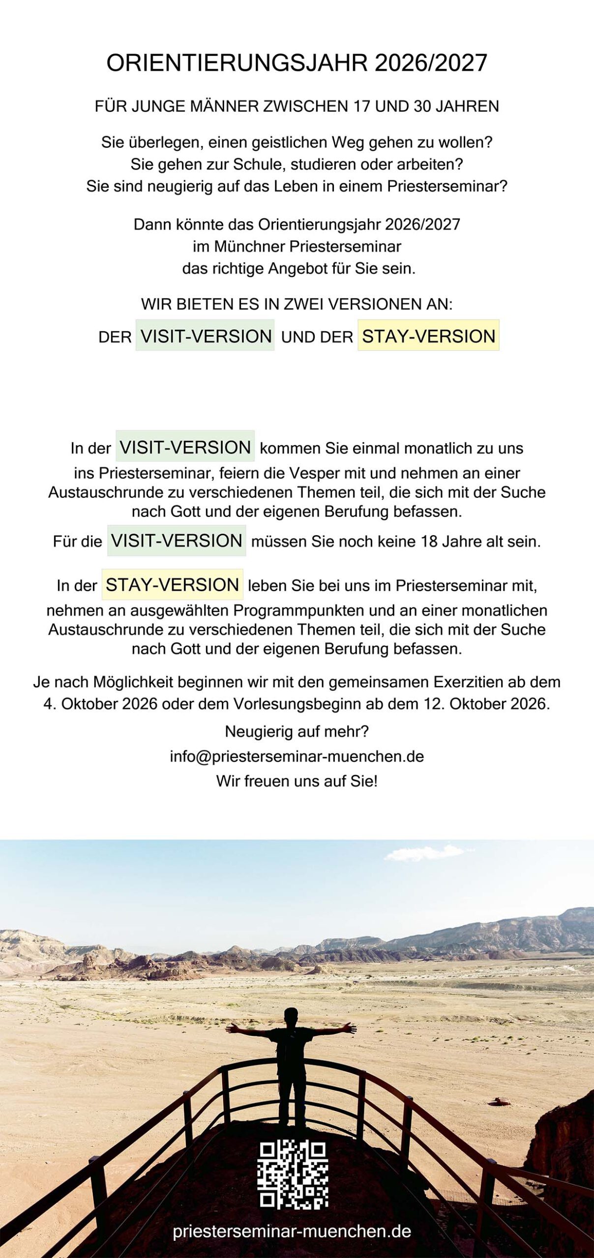 Dann könnte das Orientierungsjahr im Münchener Priesterseminar das richtige Angebot für Sie sein.